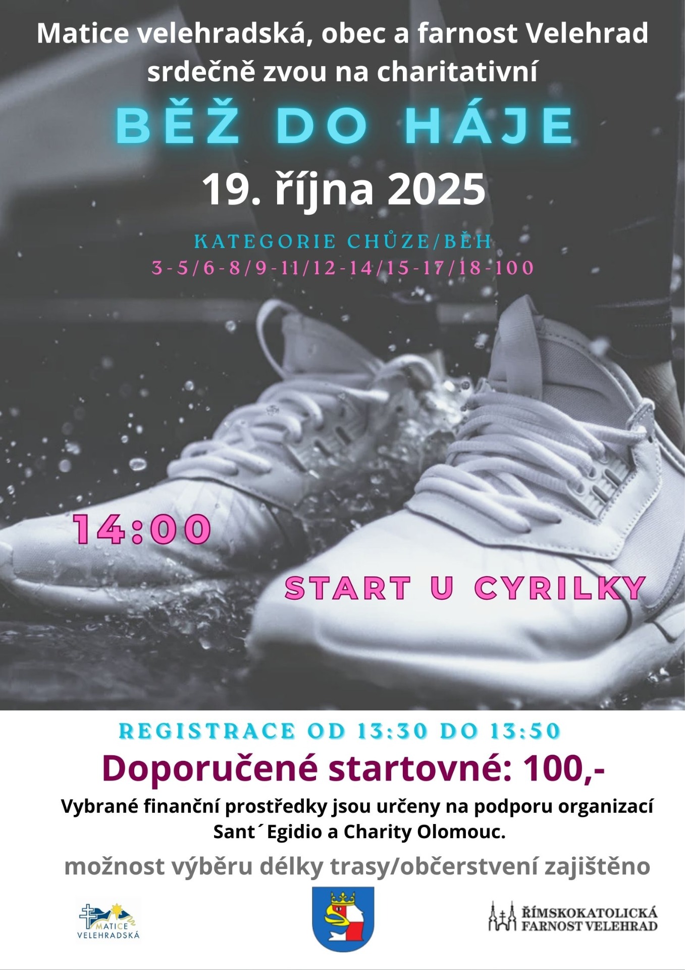 Obec Velehrad, farnost i Matice velehradská srdečně zvou na charitativní Běž do háje 19. října.